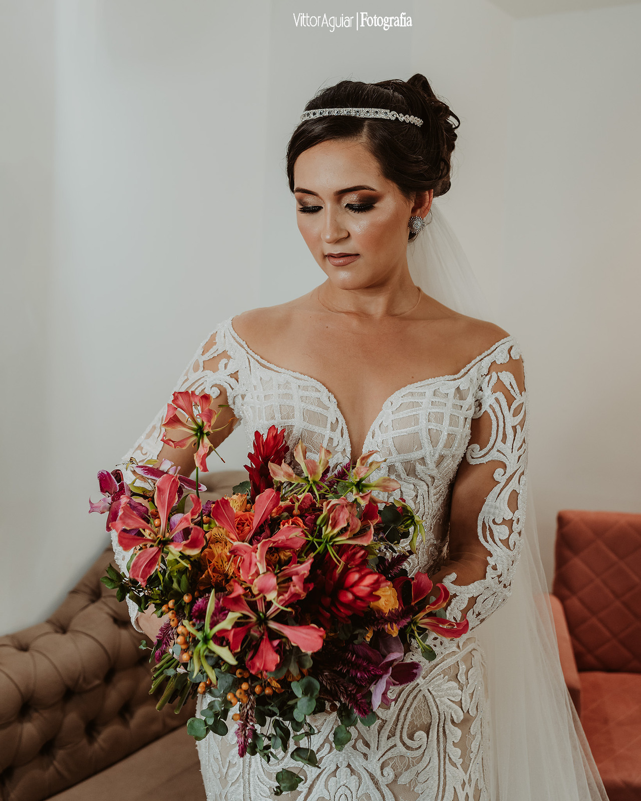 Por isso, converse com sua cerimonialista e estilista. Além de terem ótimas dicas para combinar tudo, ajudará a te escolher os sapatos e outros acessórios para o grande dia.